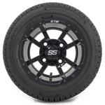 A set of (4) 10-inch Storm Trooper black golf cart wheels on 205/50-10 (18-inch) tires