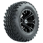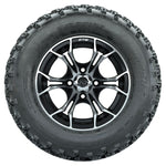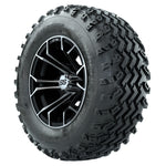 A set of (4) 12-inch GTW® Spyder Machined/Black golf cart wheels Mounted on 23x10.00-12 Rogue All-Terrain Tires