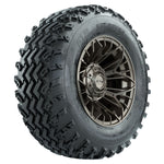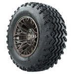 A set of (4) 12-inch GTW® Stellar Matte Bronze golf cart wheels Mounted on 23x10.00-12 Rogue All-Terrain Tires