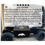Drive faster, further, and longer in minutes with our 105ah 48V Lithium Rhino conversion kit! Our 105ah delivers 5376Kw of power and an extended drive range of 50 miles on a single charge!