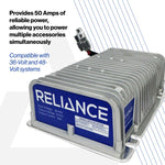 The Reliance¨ 50 Amp DC Converter is the ideal upgrade for your golf cart. Designed for high performance, it ensures efficient energy use and provides a steady power supply to your 12V accessories. With a robust 50-amp capacity, this converter supports heavy loads and offers a long-lasting performance for all your golf cart needs.