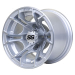 Spyder 10 inch GTW golf cart wheel - Silver Brush