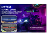 Incredible dual 2.1 Hi-Fi HD audio and epic LED lighting technology at your fingertips! This finely-tuned soundbar delivers crystal clear sound and deep moving bass sure to please even the most critical sound enthusiasts.