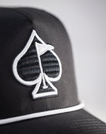 This rope snapback hat blends performance and style with a custom snapback fit, built-in magnetic ball marker holder, and embroidered “Fairway Wave” Spade logo. A polished finishing touch to your golf setup.