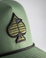 This custom rope snapback combines performance and personality, featuring our embroidered “Fairway Wave” Spade logo and a built-in magnetic ball marker holder for quick on-green access. Sleek, standout, and course-ready.