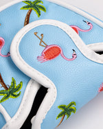 The Dancing Flamingo putter cover is handcrafted from fade-resistant synthetic leather with a plush interior and magnetic closure. Available in blade and mallet styles, it offers lasting protection and playful style—backed by a lifetime guarantee.