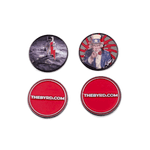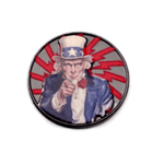 The Byrd Golf 'Merica ball markers made from cast metal and black nickel plated with oven cured enamel. Durable and heavy with Uncle Sam and Lunar Landing designs. Easily attach to any magnetic surface including on our magnetic brim golf hat, Byrd Golf Clyp, Divot Golf Clyp and custom magnetized belt buckle. Order includes 3 ball markers.