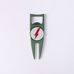 The Byrd Divot Tool is not your ordinary green repair tool but rather more like a golf multitool. It fixes greens, holds your ball marker, opens your bottles, AND you can rest your club on it when the grass is wet. Buy one or collect them all.