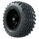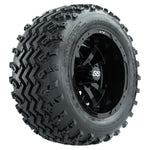 A set of (4) 10-inch GTW® Storm Trooper Black golf cart wheels Mounted on 18x9.50-10 Rogue All-Terrain Tires