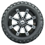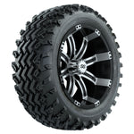 A set of (4) 14-inch GTW® Tempest Machined/Black golf cart wheels Mounted on 23x10.00-14 Rogue All-Terrain Tires