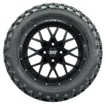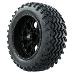A set of (4) 14-inch GTW® Matte Black golf cart wheels Mounted on 23x10.00-14 Rogue All-Terrain Tires